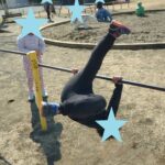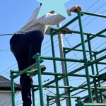ジャングルジムでは次々と上へ登り