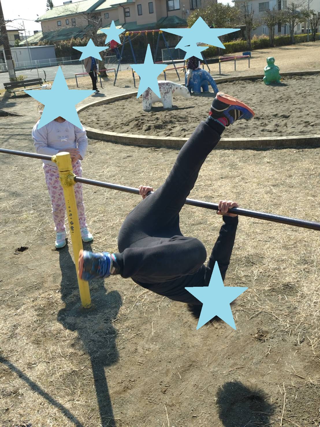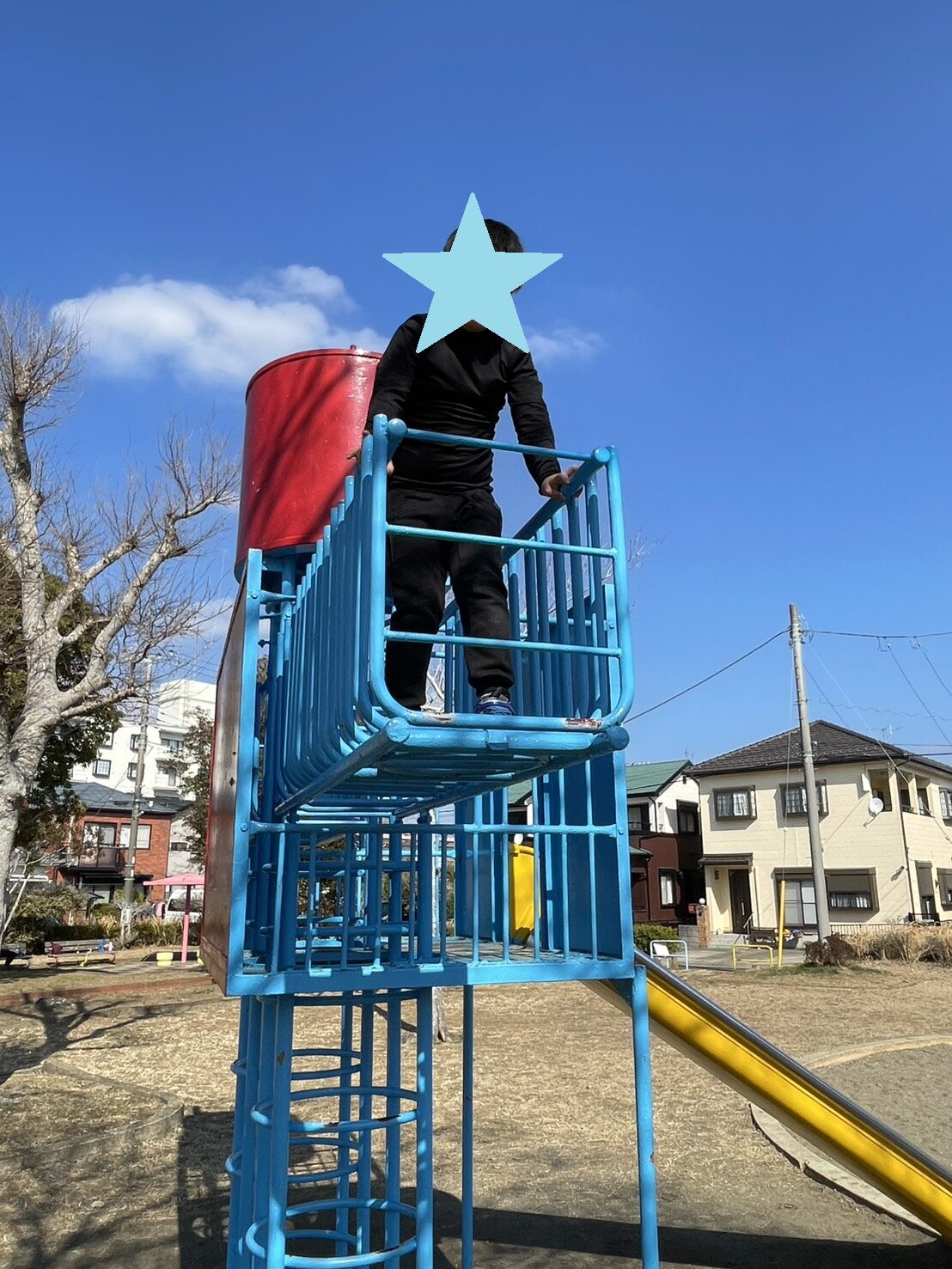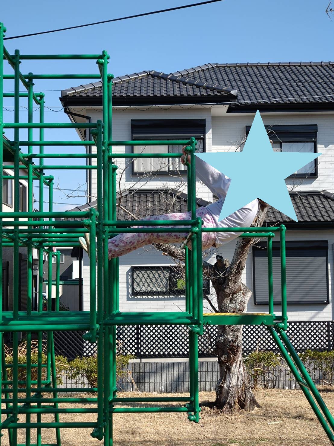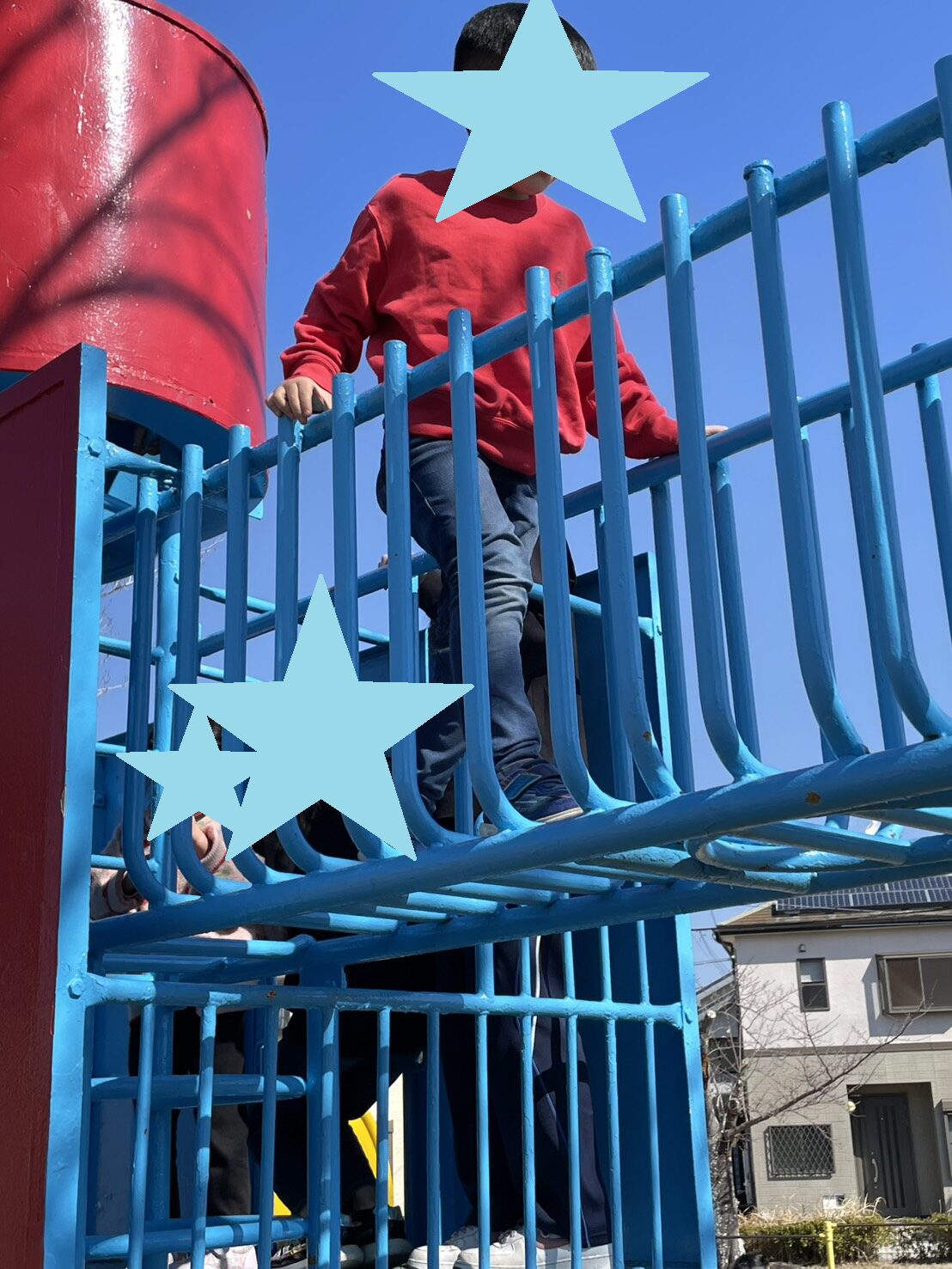 ジャングルジムでは次々と上へ登り